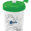 Copo plástico personalizado com capacidade para 200 ml possui canudo flexível, 6 mini lápis de cor ecológico e 3 desenhos para colorir.