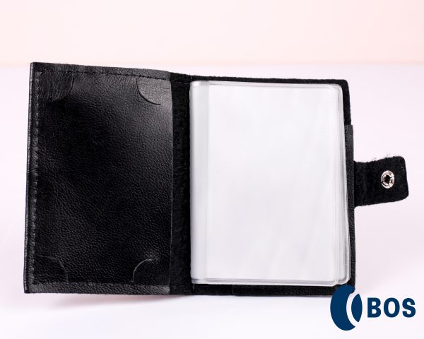 Porta cartão em courino com 6 plásticos e botão para melhor segurança dos seus cartões e organização.
